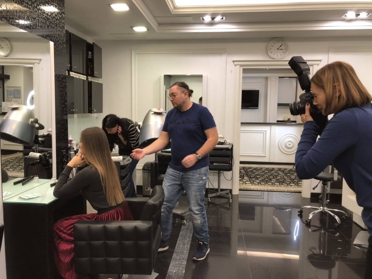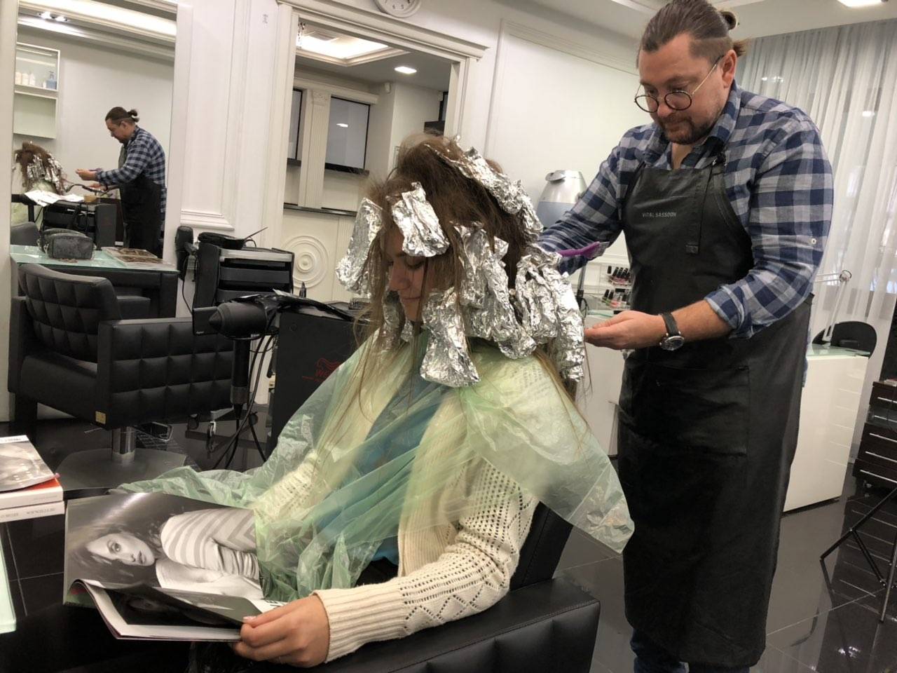 Но все-таки какие-то изменения в прическе нам были необходимы. И я подумал, что было бы неплохо несколько смягчить черты лица и за счёт цвета добавить в образ большей определенности. Мягкий, не очень контрастный шатуш стал отличным решением для этой задачи.