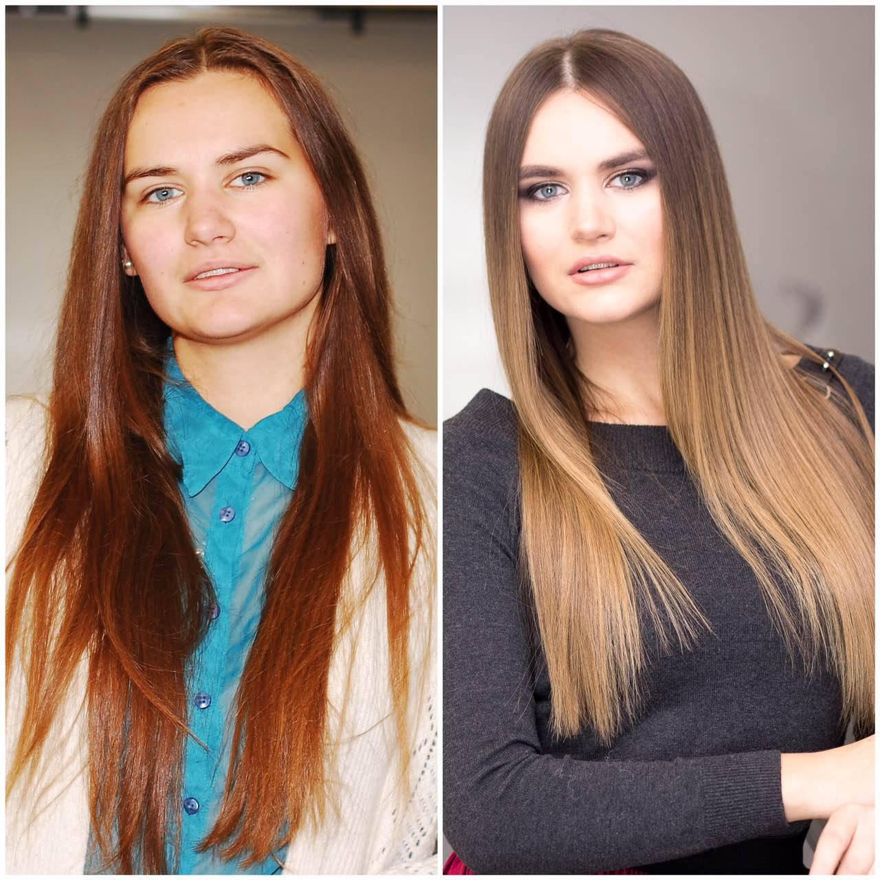 У даному випадку, довге волосся для такої молодої дівчини – це справжнє багатство, і я дозволив собі наполягти на збереженні довжини. По декільком причинам. По-перше, коротка стрижка вимагає більшої уваги з догляду, а Елла такого досвіду не має. Так що тут її могли підстерігати справжні складнощі з укладкою та суцільні розчарування. Тим більше, у стрижці не було жодної потреби з точки зору пропорції, стилю та гармонії.